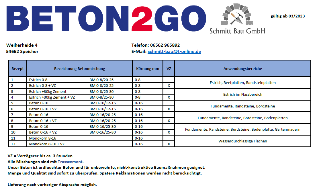 BETON2GO - Die Betontankstelle in Speicher